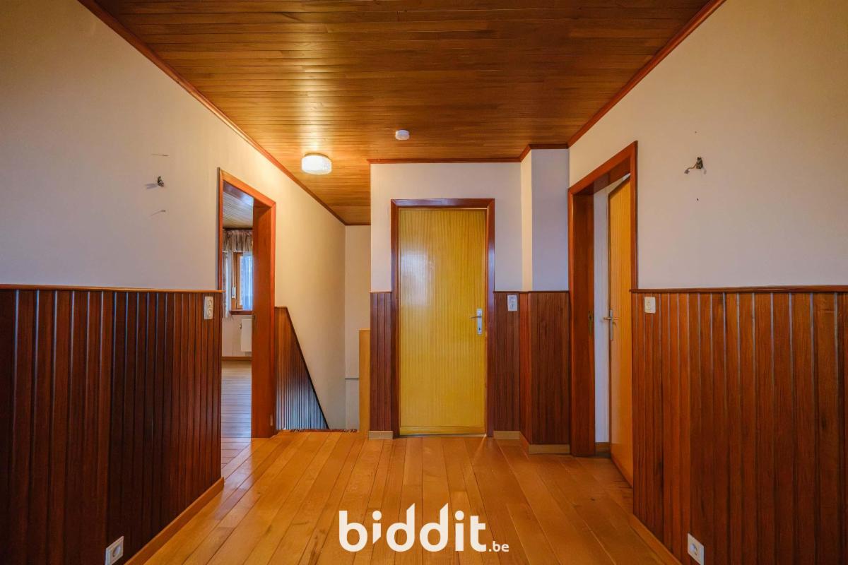 - 1e verdieping: hal, 3 slaapkamers, badkamer met ligbad en lavabo en berging.
