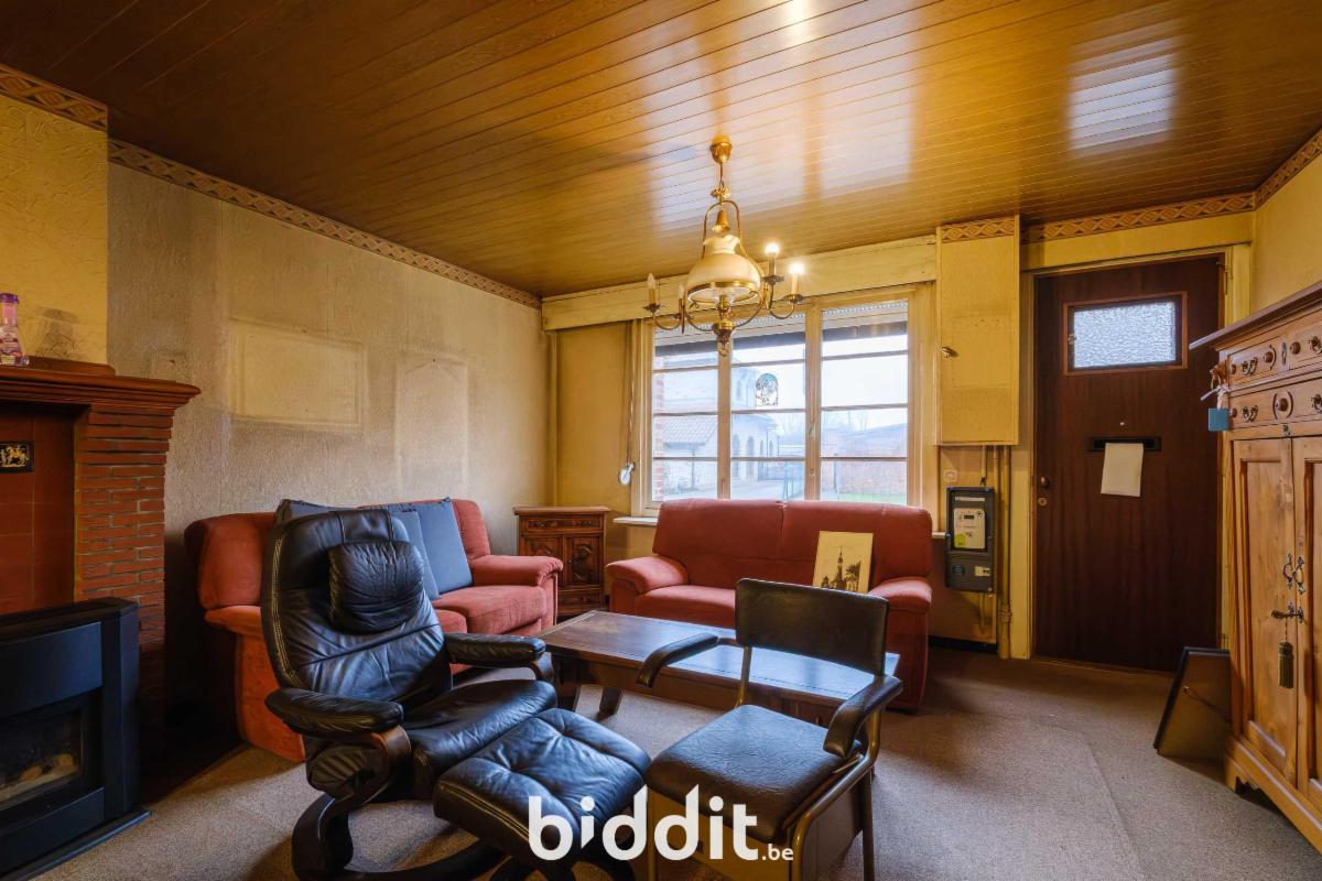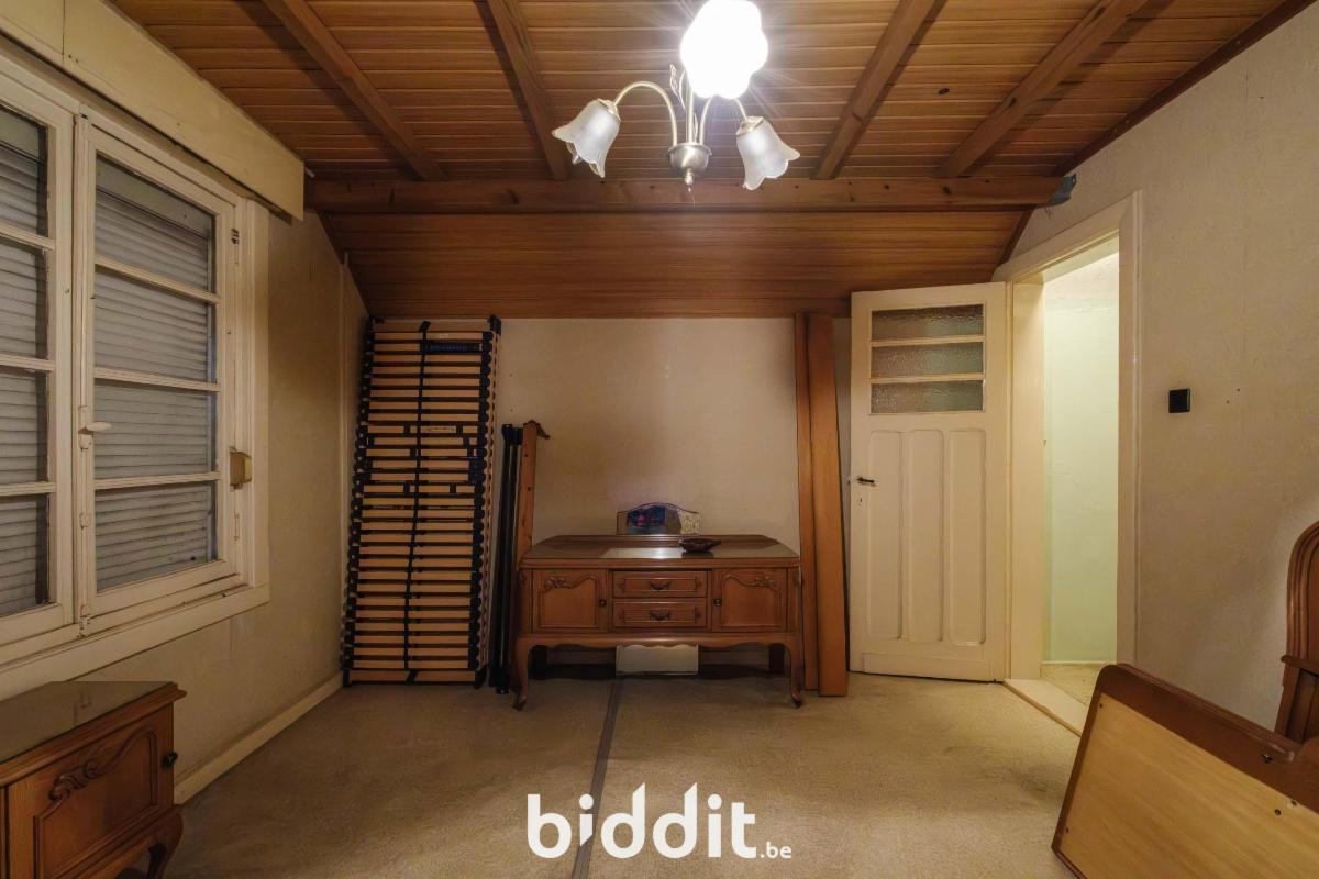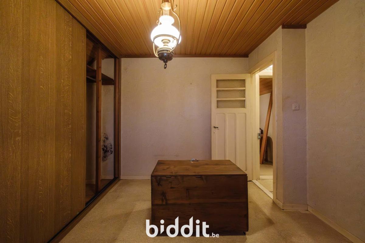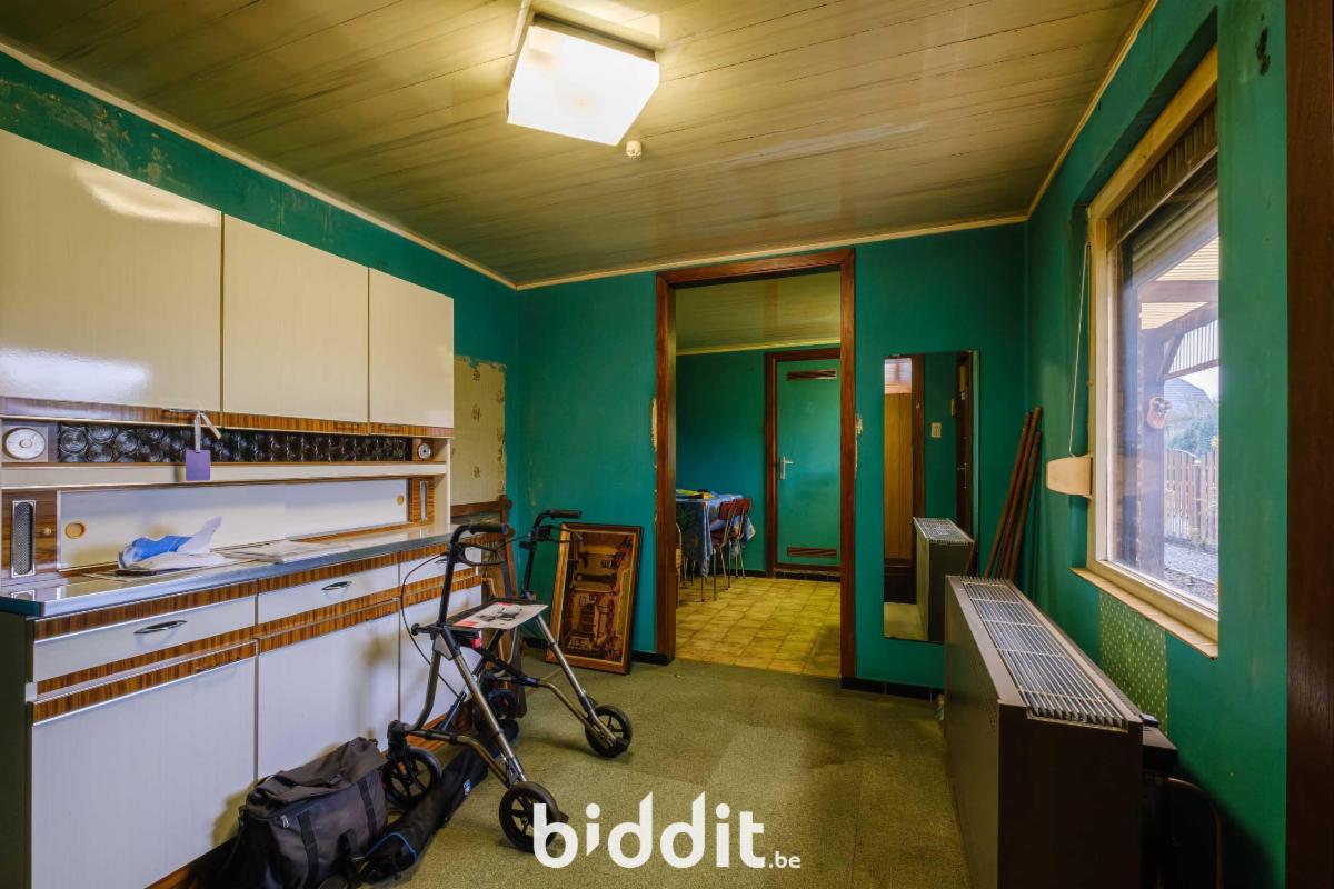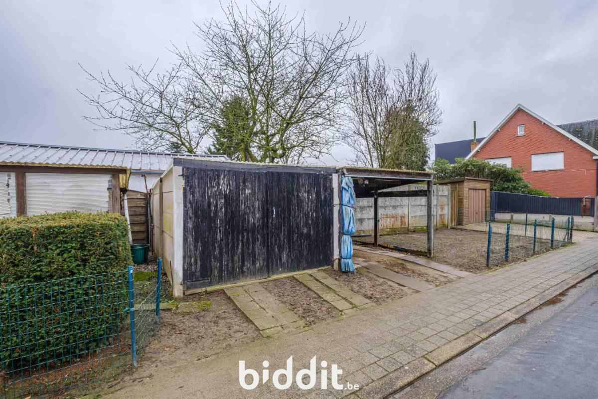 - gelijkvloers: living, eetplaats, niet-geïnstalleerde keuken, badkamer. Overdekt terras, buitenberging en garage;