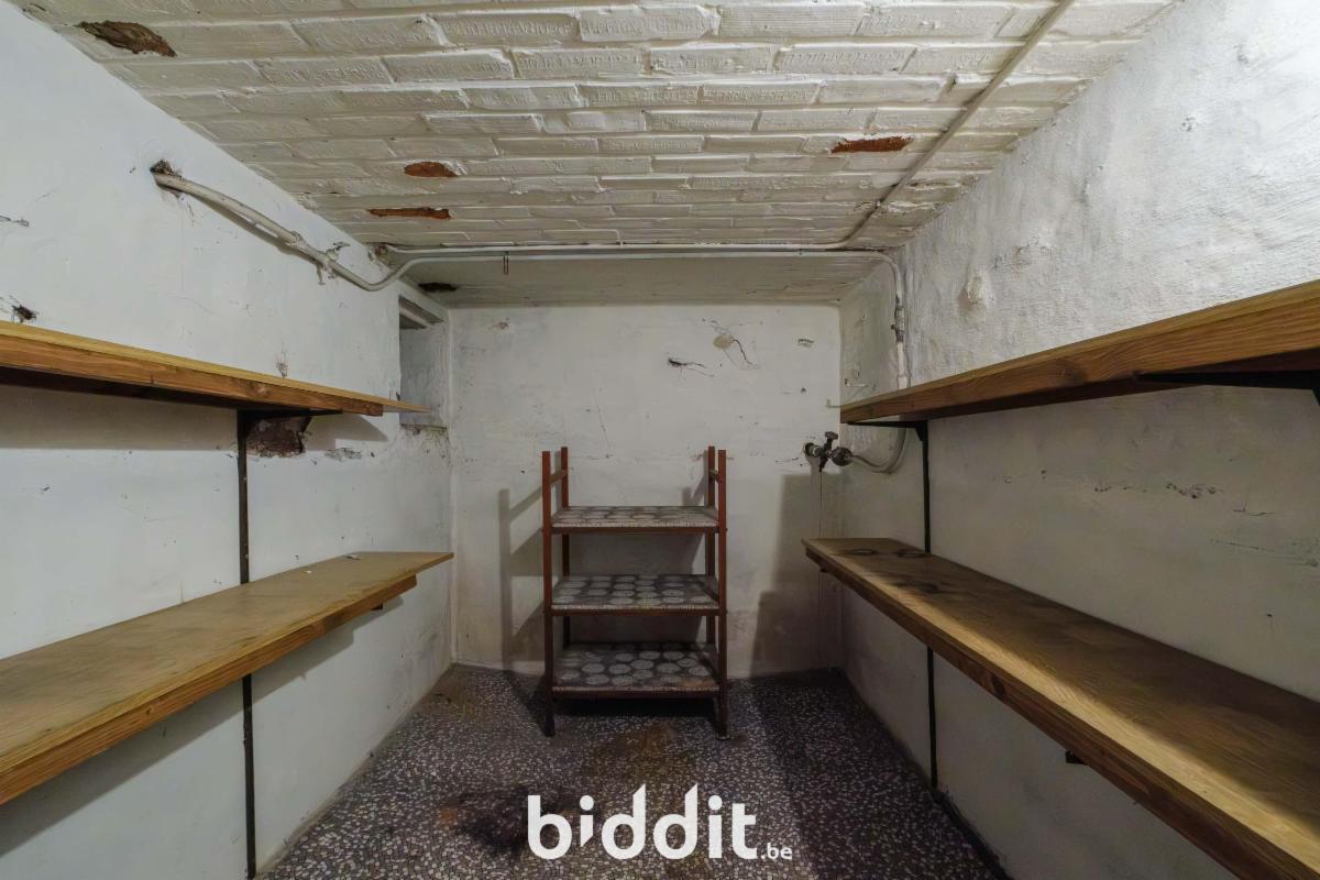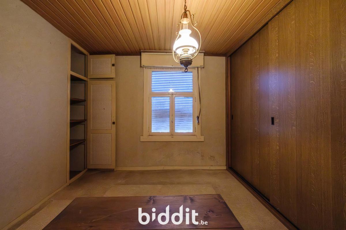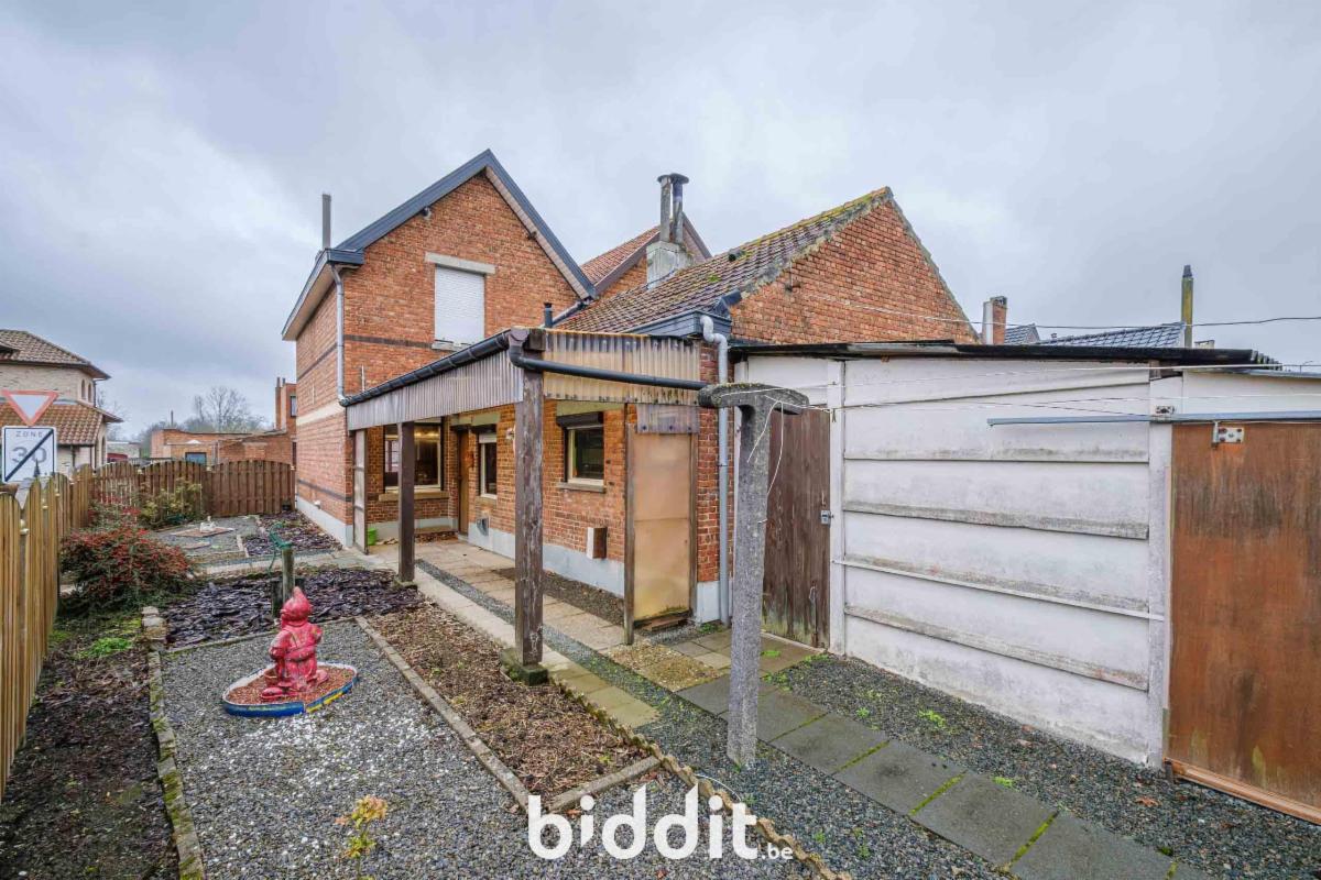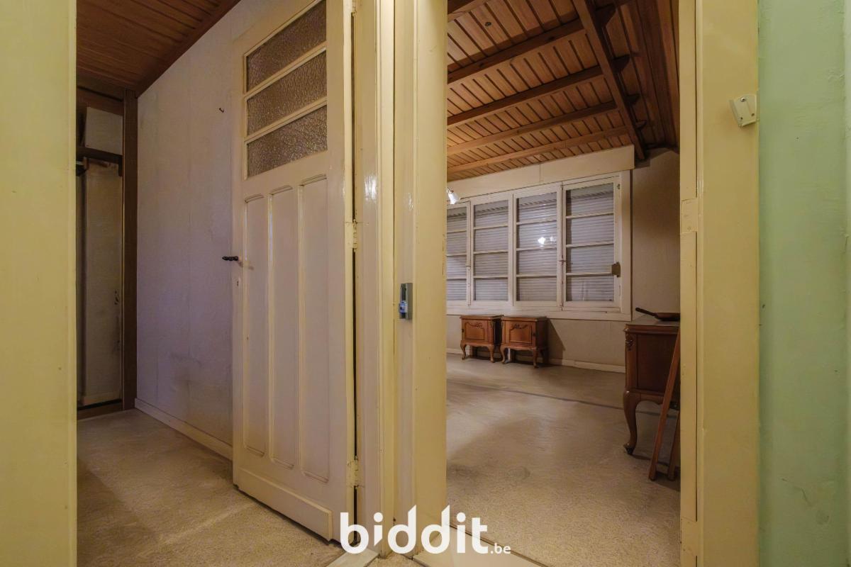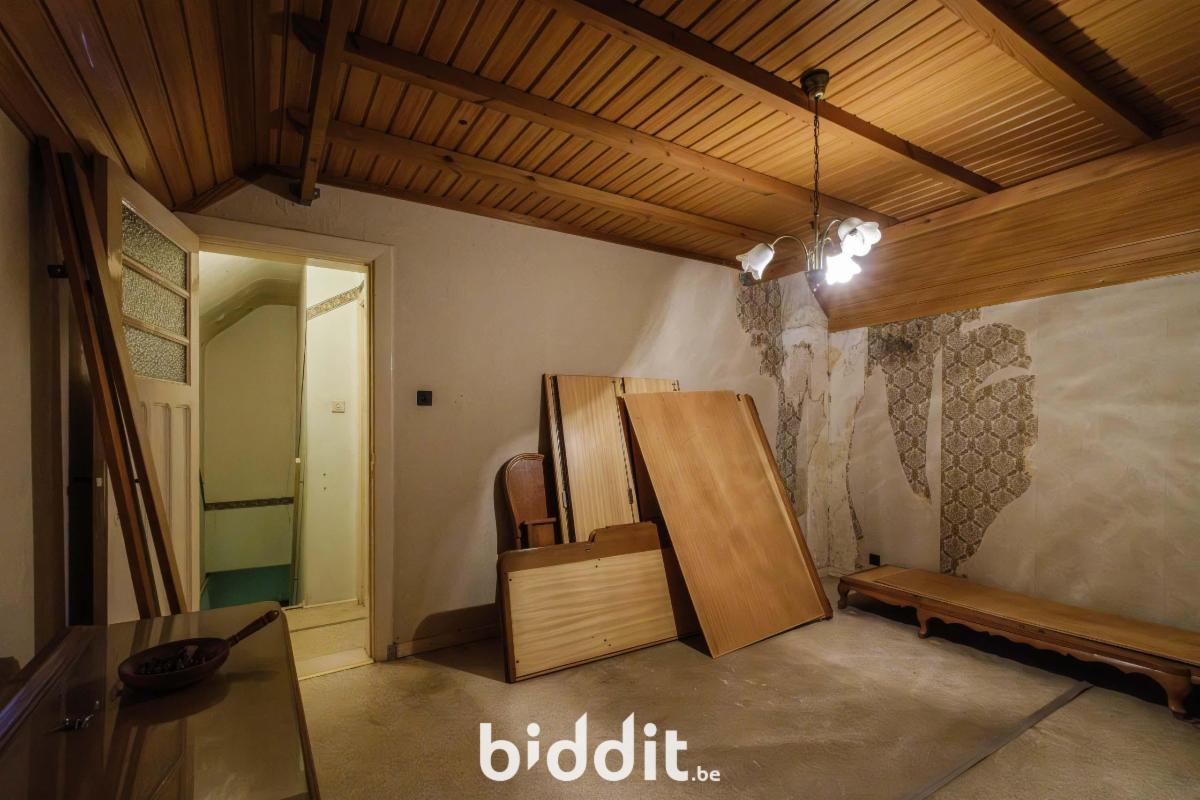 - gelijkvloers: living, eetplaats, niet-geïnstalleerde keuken, badkamer. Overdekt terras, buitenberging en garage;