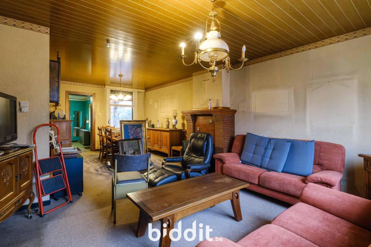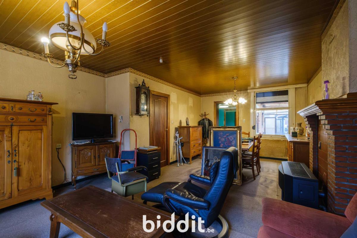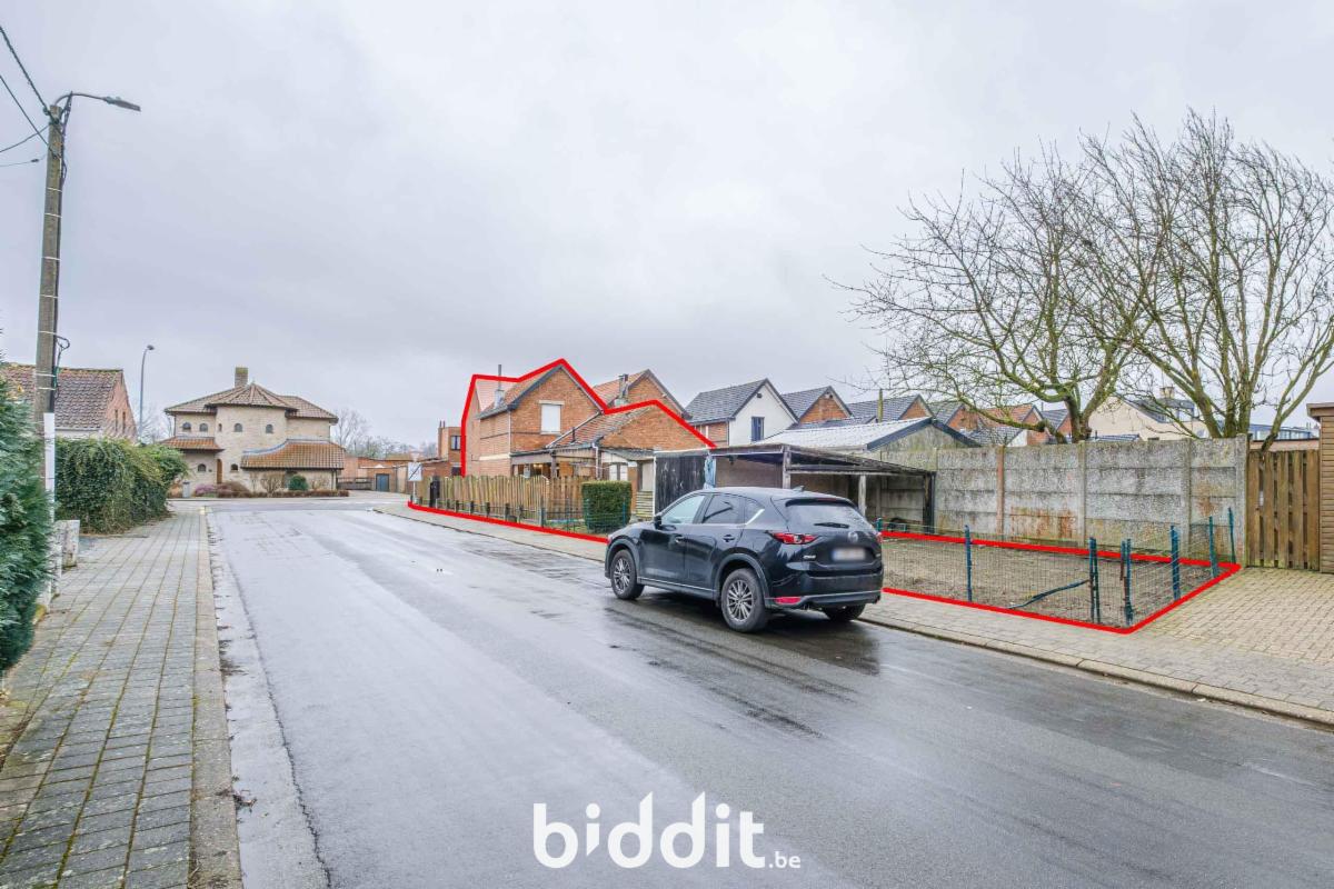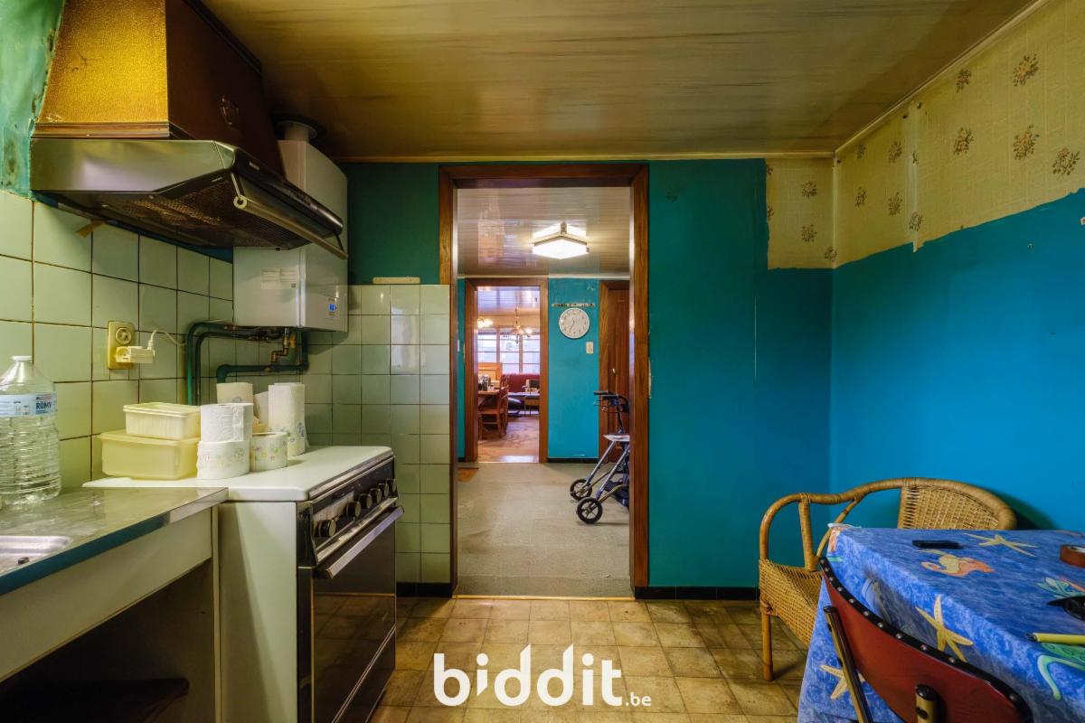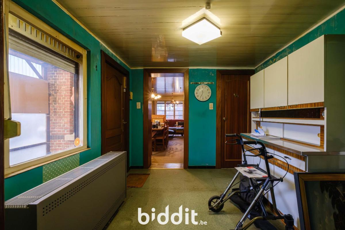 - gelijkvloers: living, eetplaats, niet-geïnstalleerde keuken, badkamer. Overdekt terras, buitenberging en garage;