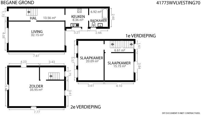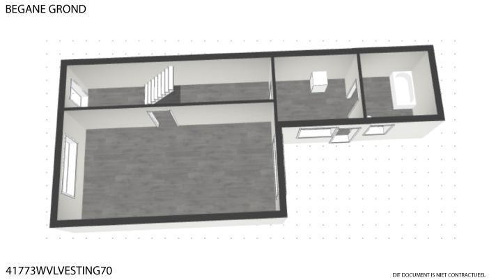 Gelijkvloers: living, keuken, badkamer, traphall;