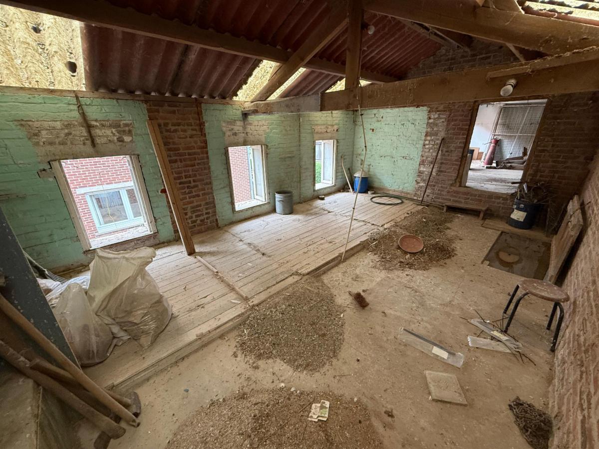 De achterbouw heeft een vloeroppervlakte van 78 m² en een evenredige zolderverdieping en herbergt de garage, het toilet en de badkamer.
