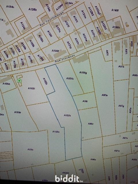 Terrain à bâtir à front de rue du Stocquoy à Hellebecq - sup. 16a 69ca - façade 19,63 m - prof +-66m (en liseré jaune sur le plan annexé) - Lien Biddit https://www.biddit.be/fr/catalog/detail/291346