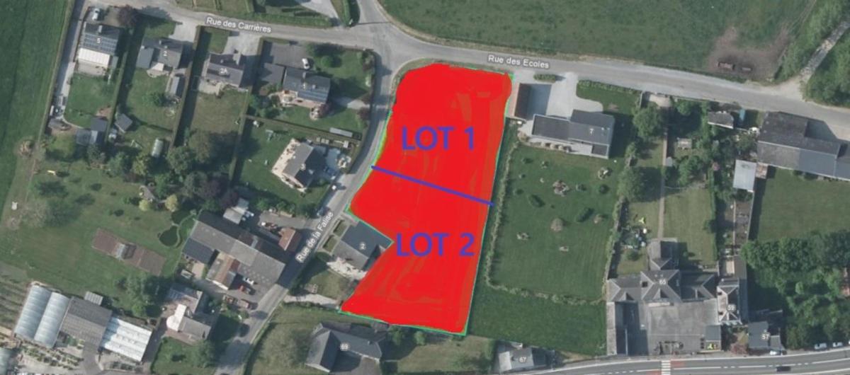 Terrains à bâtir cadastrés section B numéros 0102A2 P0000 et 0102R P0000, d’une contenance totale de 38 ares. Endroit très calme, proche de Chimay. Vente en 1 ou 2 lots.