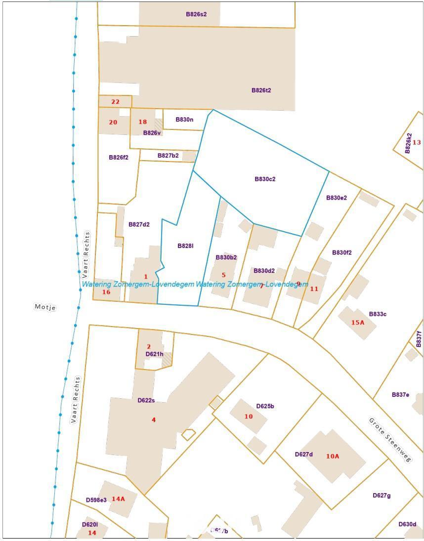 Toekomstgrond (RUP nog niet definitief) met straatbreedte van +/- 17 m en blok achtergrond, kadastraal bekend sectie B perceelnummers 0828L P0000 en 0830 C2 P0000, samen groot 2.839,55 m².