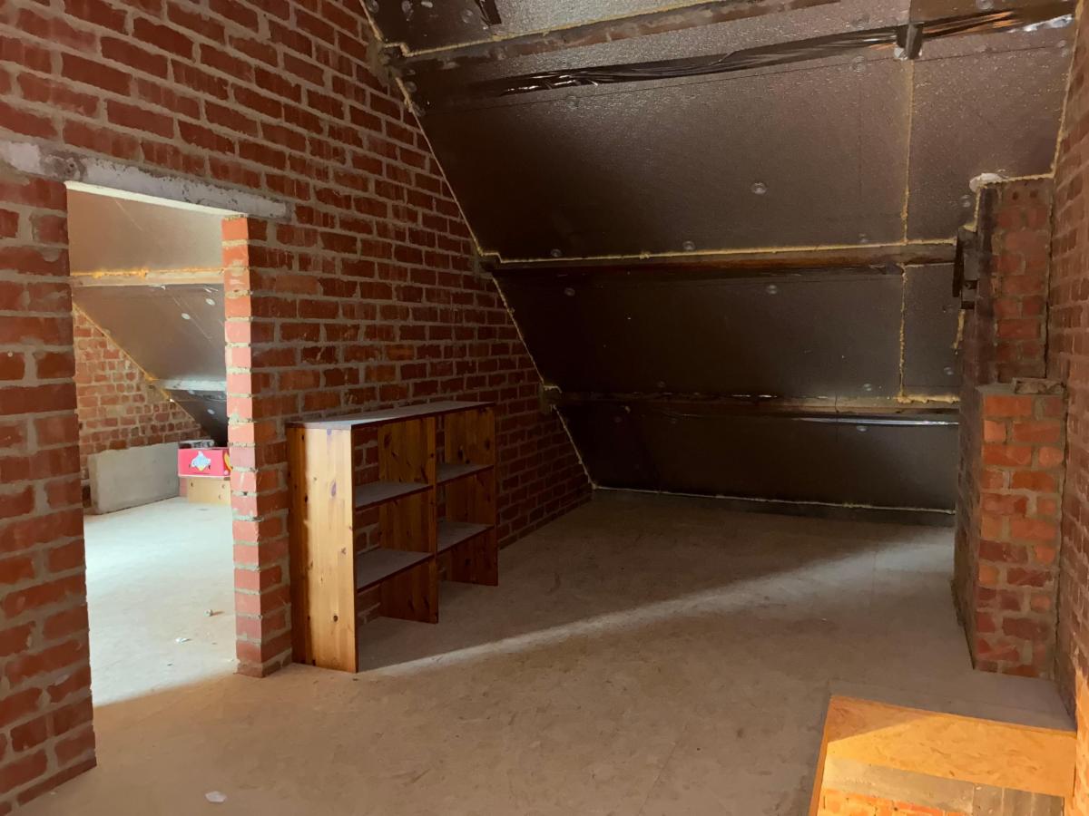 Bovendien is er een vaste trap naar het zolderverdiep, waar nog twee kamers kunnen voorzien worden. Staanplaatsen voor de woning beschikbaar, alsook inpandige garage met elektrische poort.