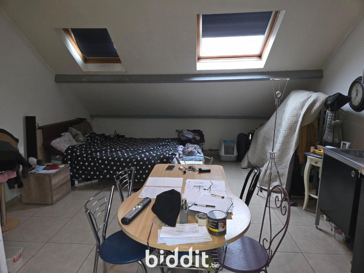 1 er étage : Un studio composé d’un living et d’une cuisine. Une salle de bains avec douche, lavabo et WC. Chauffage central au gaz de ville individuel et châssis double vitrage.