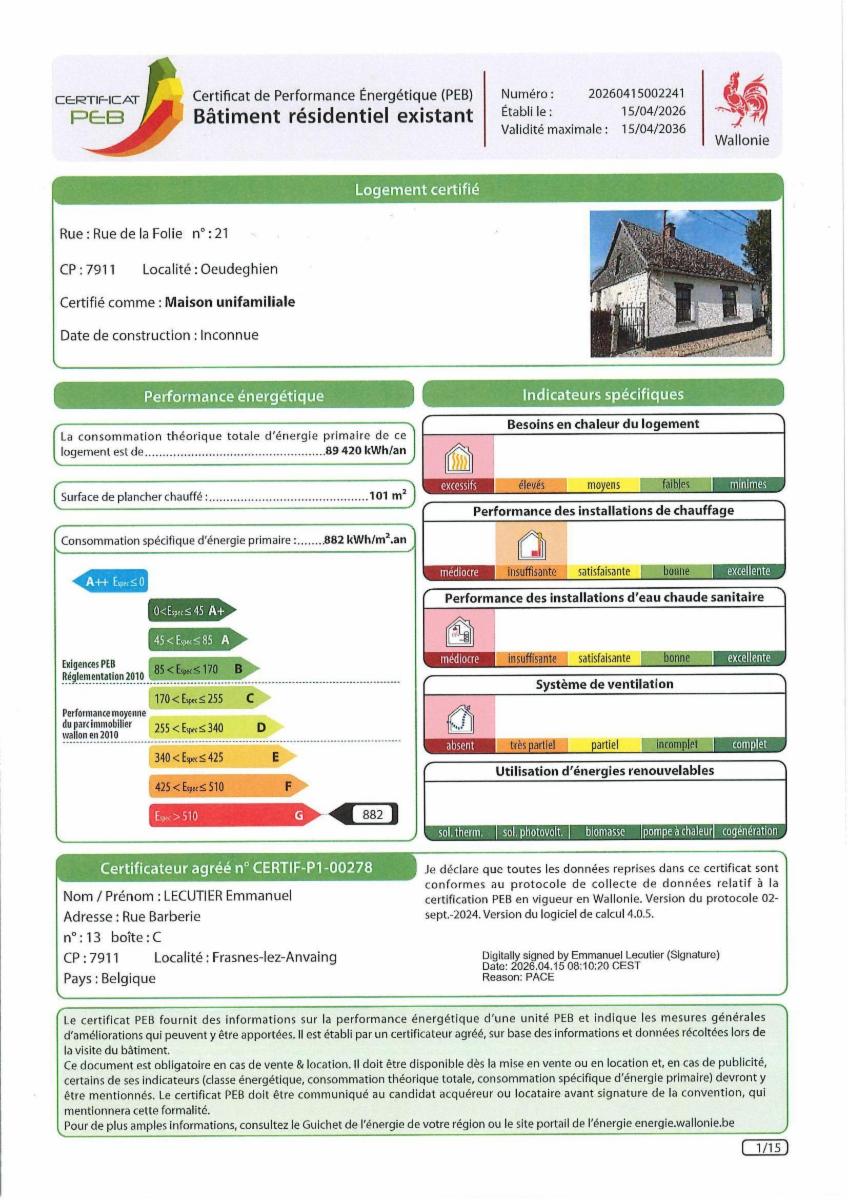 Le plan cadastral, le plan de secteur et le PEB figurent en annexe sur le site https://www.notaireloix.be et sur le site www.notaire.be.