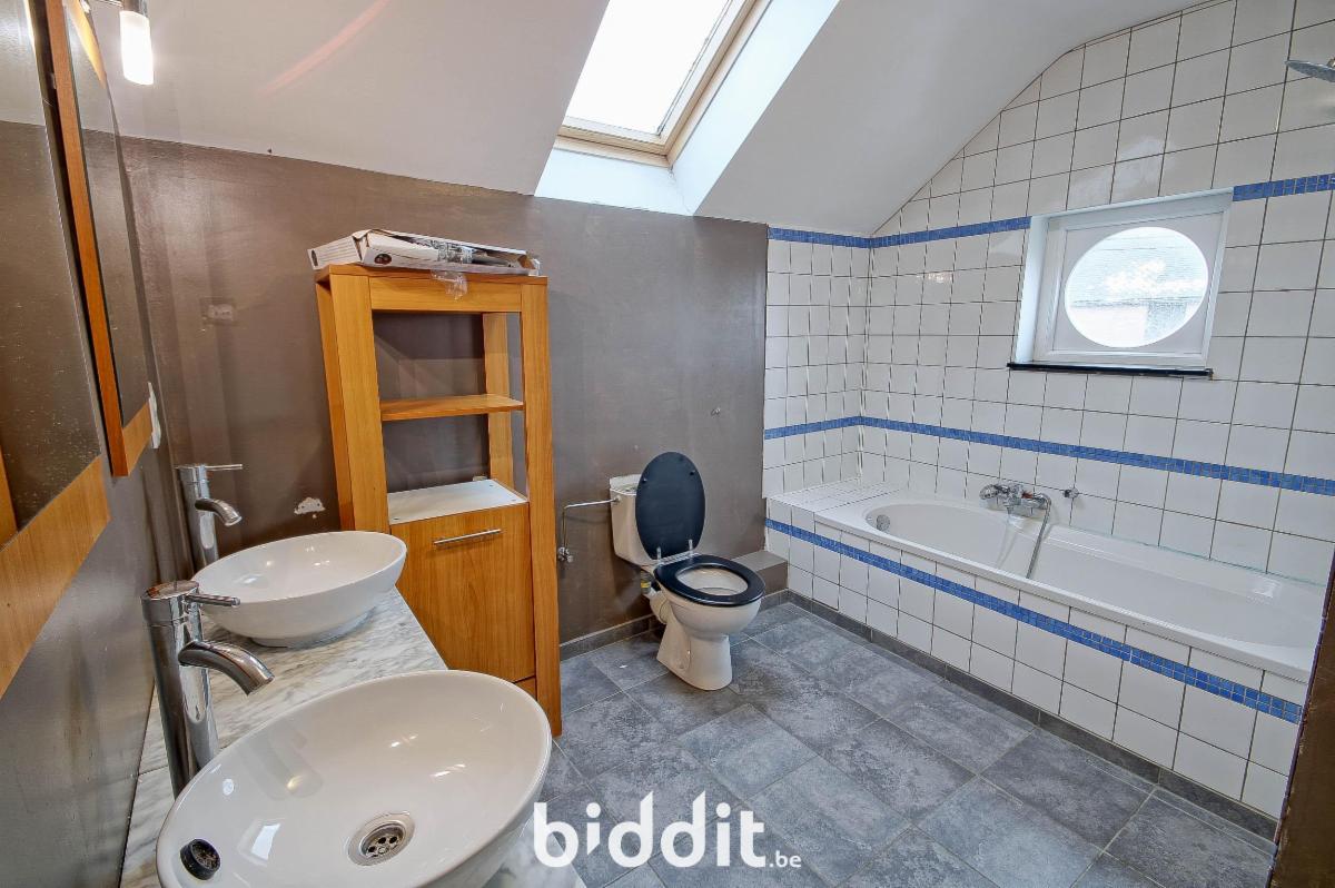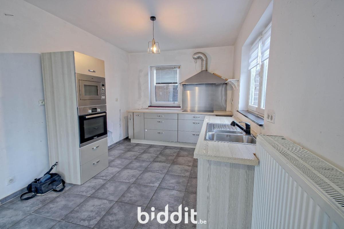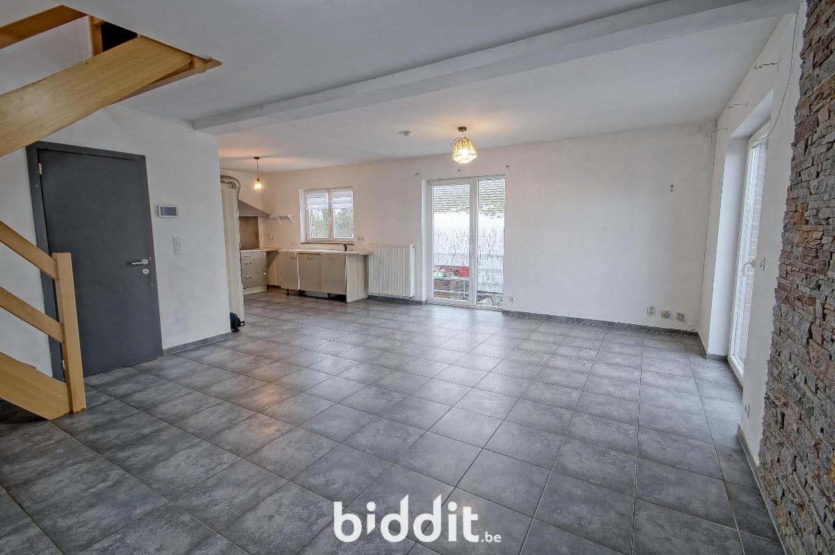 - au rez-de-chaussée : un hall d’entrée, un living avec une cuisine, un W.C., un chaufferie ;
