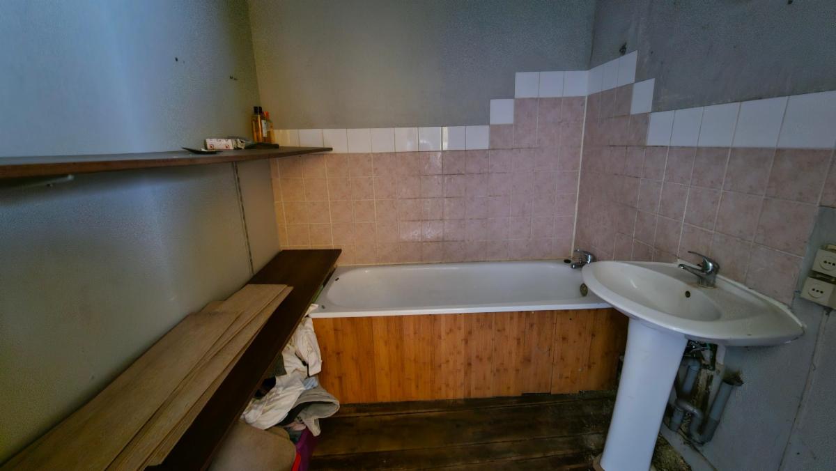 Au premier étage : Chambre donnant sur la rue, salle de bain avec baignoire ;