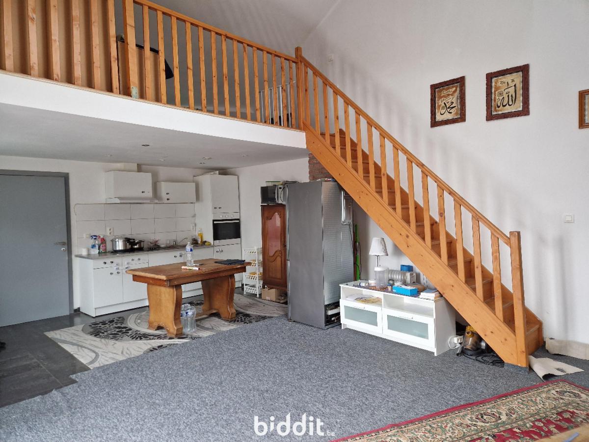 Etage : une habitation comprenant un living, cuisine, salle de bains avec baignoire, lavabo et WC, débarras, une chambre et une mezzanine.