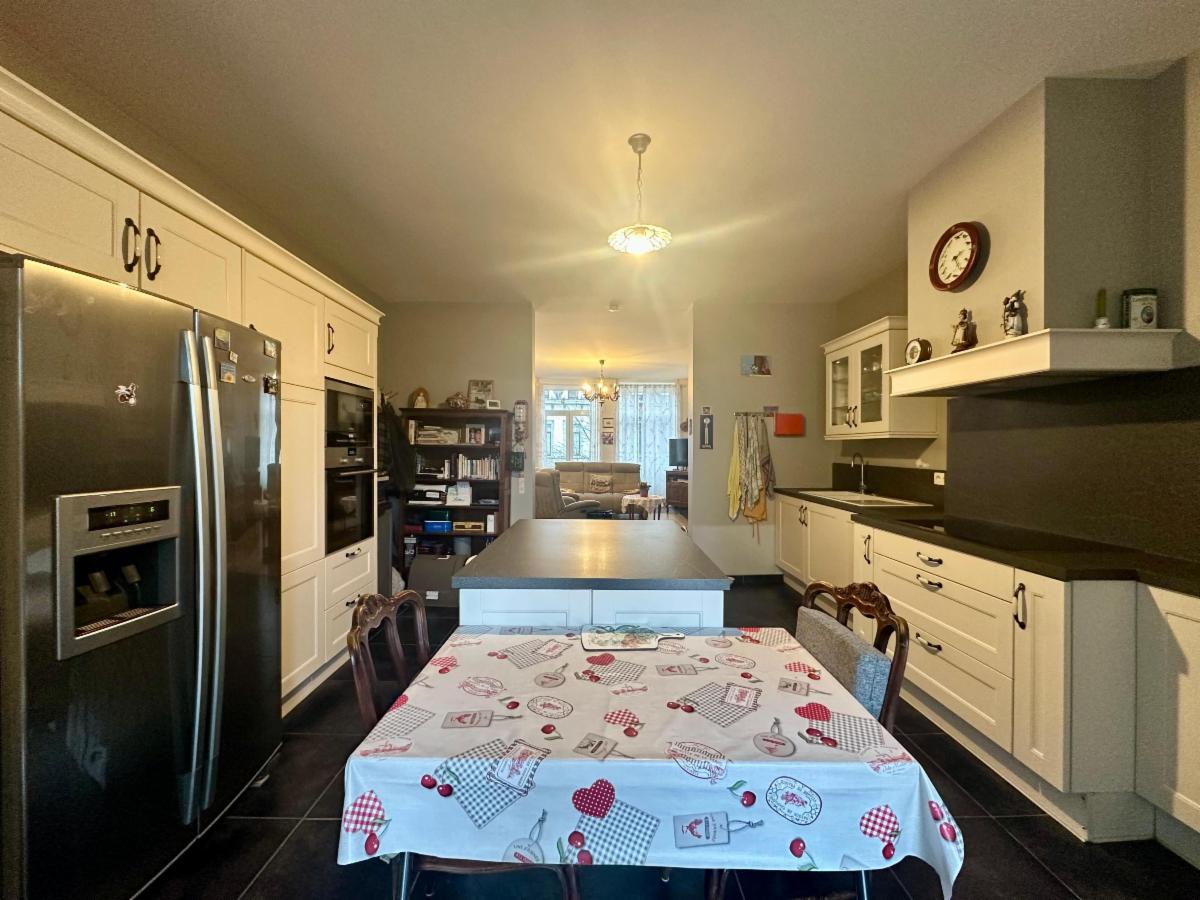 Le duplex se trouve au 1ER et 2EME étage et se compose comme suit : un lumineux séjour (31,29 m²) avec balcon, une cuisine moderne et entièrement équipée(frigo américain, four, micro-ondes, taque à induction, hotte, évier, lave-vaisselle) comprenant un îlot central. La cuisine donne accès à une spacieuse terrasse orientée Est, ainsi qu’à un jardin privatif de +/- 310 m².