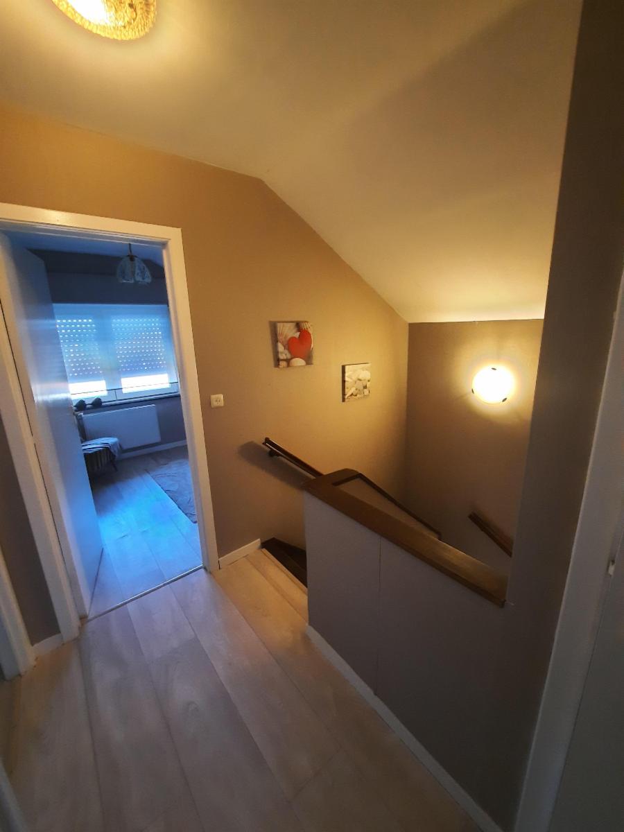 Rez : Hall carrelé ; cuisine équipée ; séjour carrelé avec poêle à pellets ; pièce à usage de bureau ; wc ; garage une voiture ;