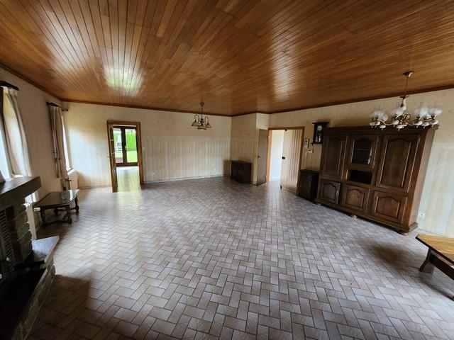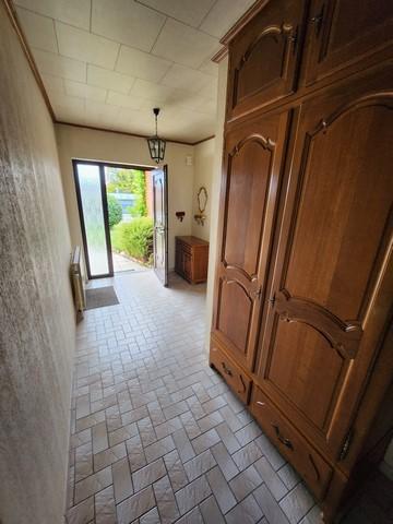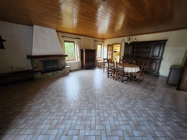 L'étude MISONNE & MICHIELSEN vous présente cette charmante maison de type plain pied composée comme suit; Rez-de-chaussée: Hall d'entrée (9m2), salle à manger / séjour (46m2), cuisine (12m2), salle de bains (6m2), chambre 1 (10m2), chambre 2 (13m2), chambre 3 (16m2), toilette (1m2), hall de nuit (7m2), garage (25m2), réserve (2m2). Comble: Grenier non-aménageable. Equipements: Raccord aux égouts, châssis double vitrage bois, couverture de toit en ardoises, chauffage central au gaz "Vaillant", boiler électrique, cassette au bois, citerne d'eau, électricité à remettre en conformité, cuisine équipée, adoucisseur. RC: 1329€. Terrain: 9 ares