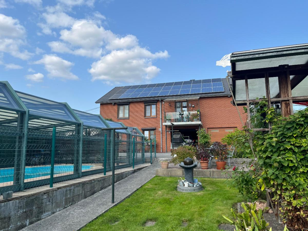 Villa en excellent état avec piscine couverte et chauffée, de plain-pied, idéalement située dans un endroit paisible, proche d’Yvoir et de toutes ses commodités. Année de construction : 1976. Composition : RDC : hall d’entrée, WC, salon-SàM (cassette à bois), cuisine équipée, SDB-D, 3 chambres, belle véranda ; 1er étage : grenier aménagé. Sous-sol : belles caves, chaufferie, 2 garages, une fosse. Châssis triple vitrage (2012). Chauffage par pompe à chaleur (2012), climatisation dans les chambres, portail électrique, citernes à eau de pluie. Bon PEB : C, surface habitable : 140 m², électricité conforme (à confirmer), 33 panneaux photovoltaïques. Vaste jardin clôturé, agréable, agrémenté et arboré avec potager, terrasse couverte. Visites Visites : les mercredis et samedis après-midi sur RDV en contactant l’Etude.
