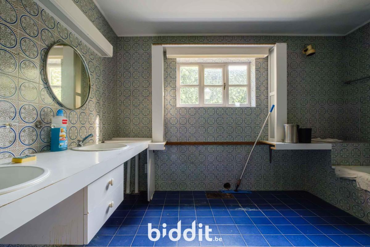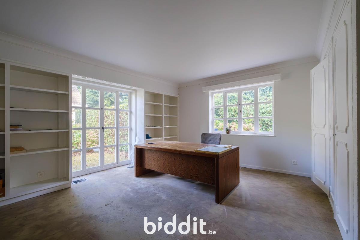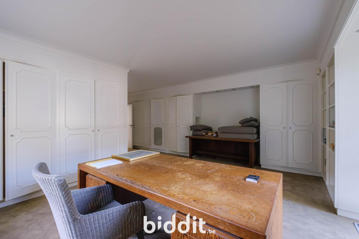 Bureau/slaapkamer op het gelijkvloers met aangrenzende badkamer, momenteel in gebruik als wasplaats.