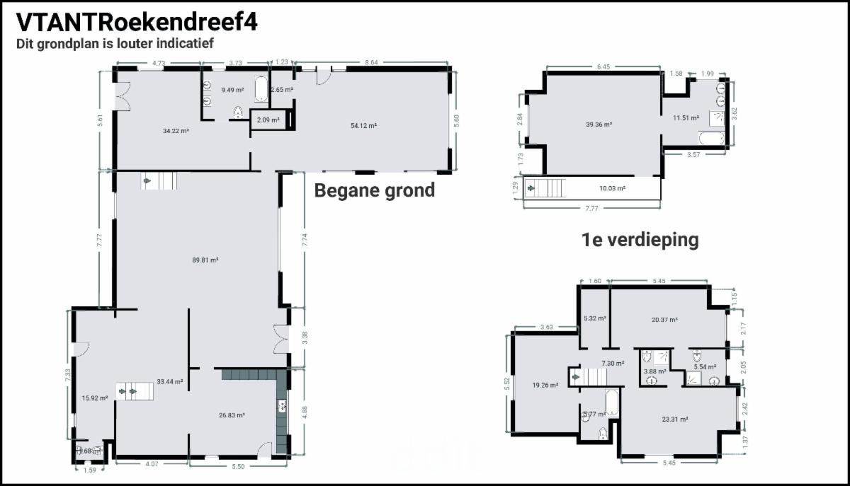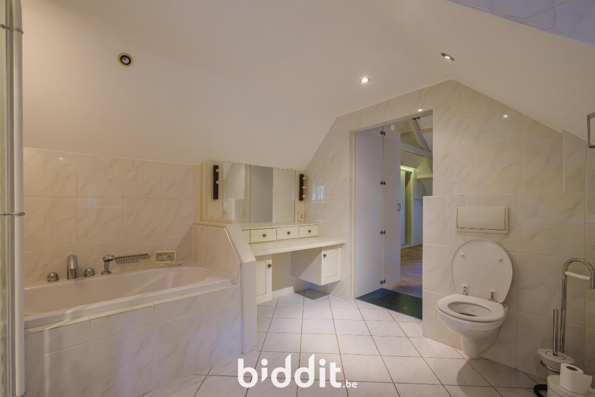 Een tweede trap vanuit de inkomhal geeft toegang tot het andere gedeelte waar we nog drie grote slaapkamers treffen met elk een eigen badkamer voorzien van douche en bad, badkamermeubel en toilet.