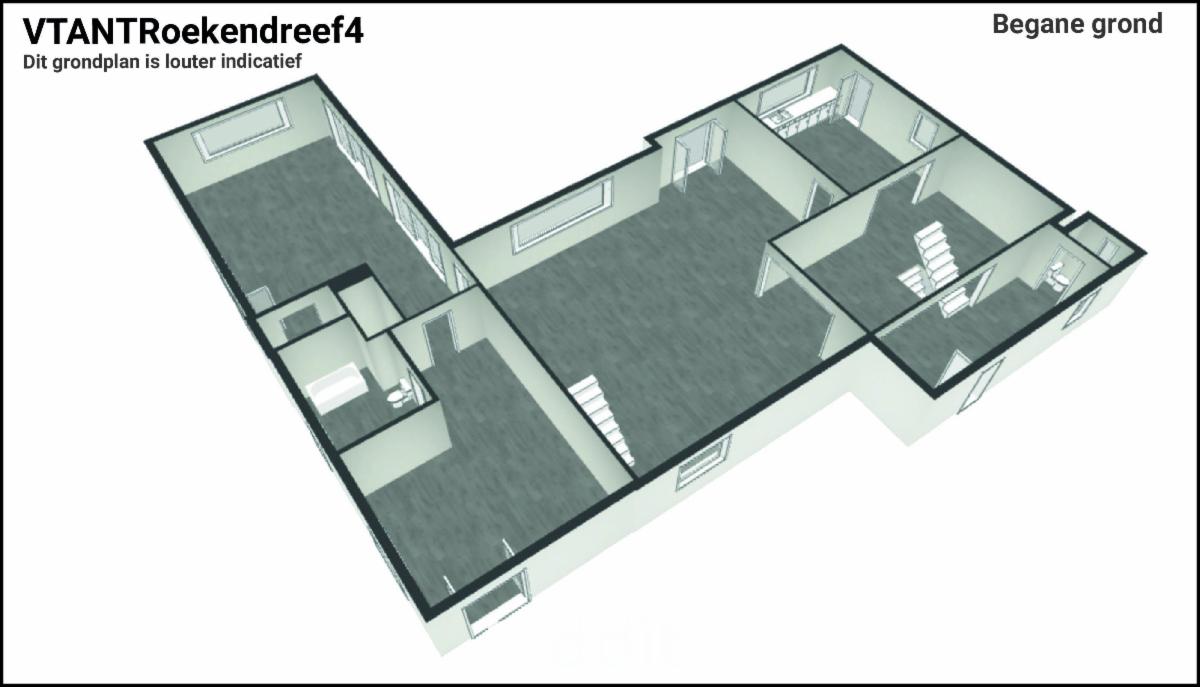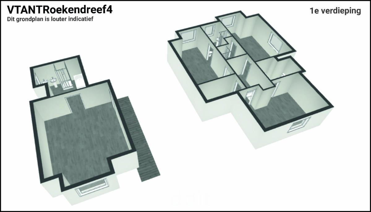 Indeling bovenverdieping: via de open trap van de woonkamer bereikt u de masterbedroom op de verdieping met ensuite badkamer voorzien van douche, ligbad, toilet en dubbele lavabo.