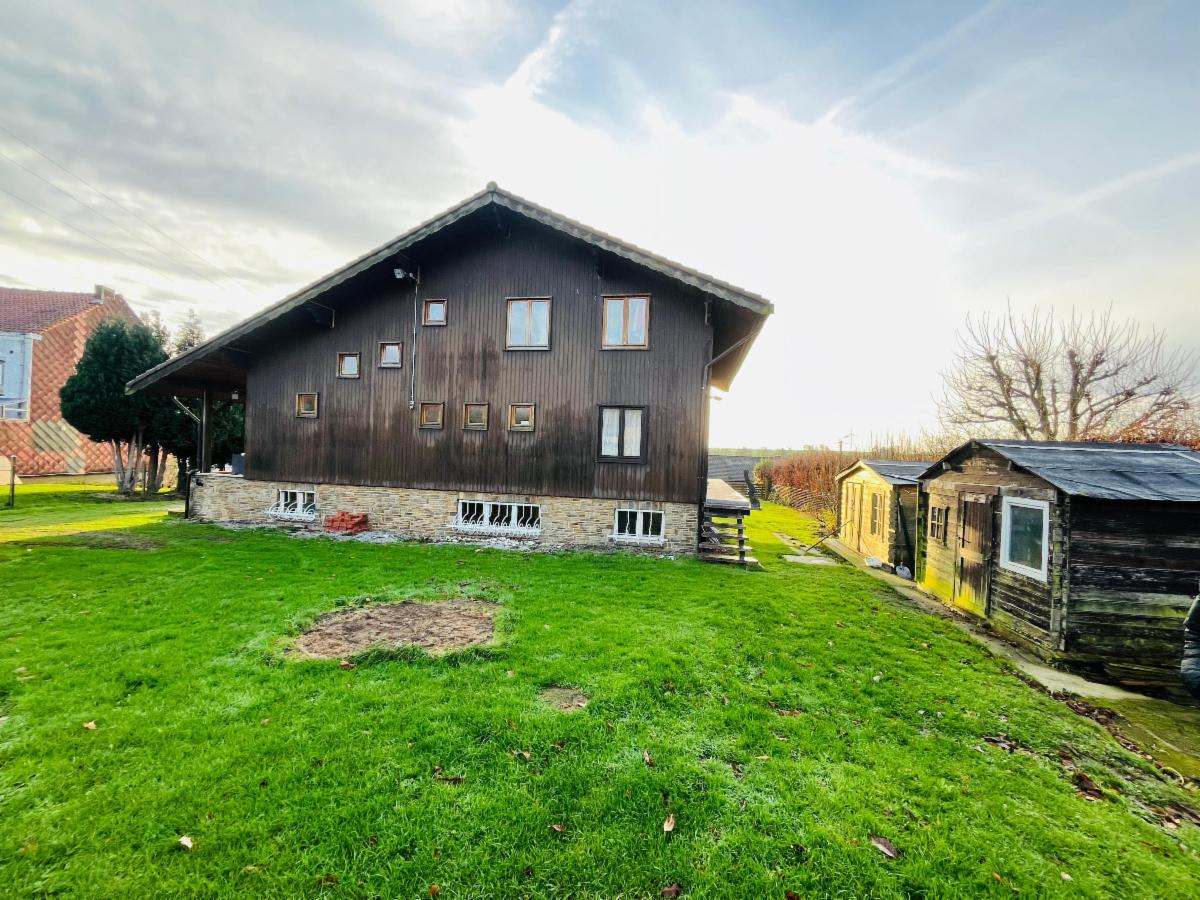 - Vaste jardin tout autour du chalet avec 3 abris de jardin et un garage. Passage latéral droit avec portique.