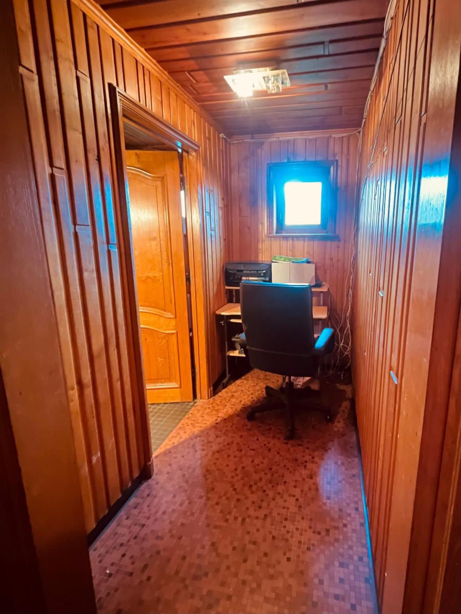 - Au niveau jardin (+/- 100 m²): un grand garage, une buanderie, une chambre et un débarras.