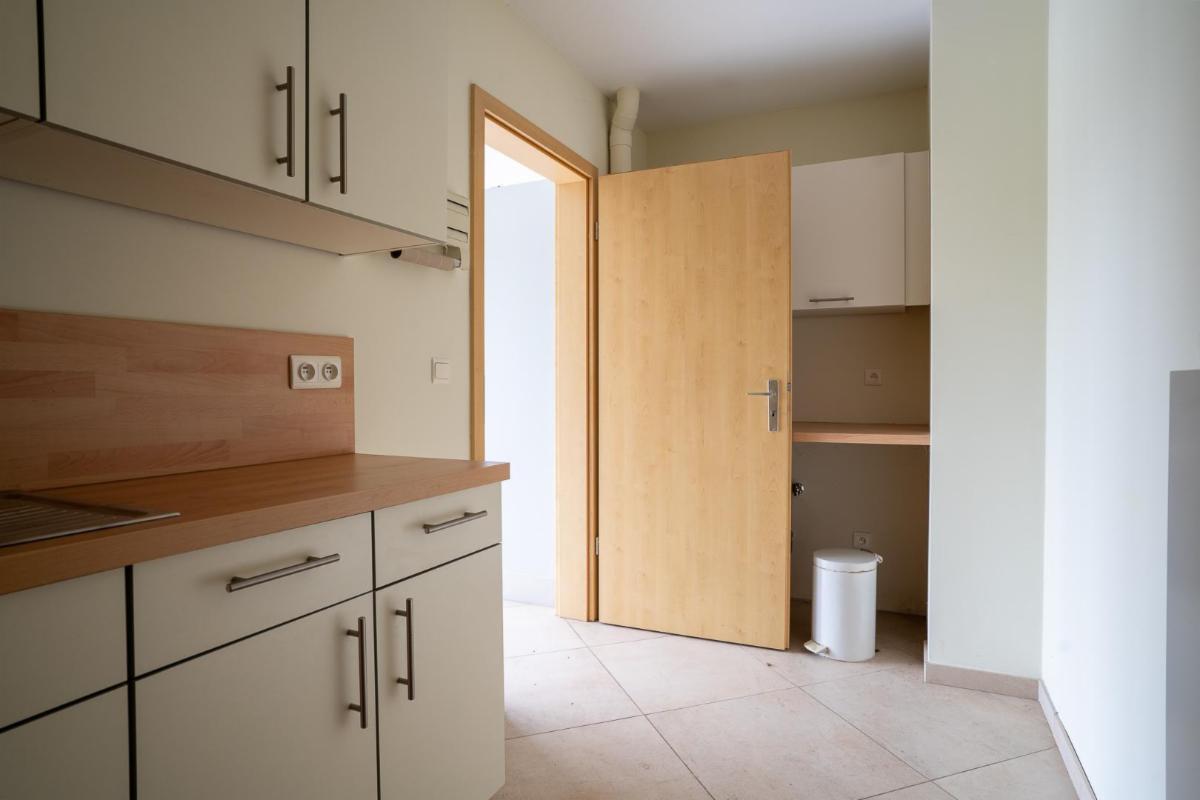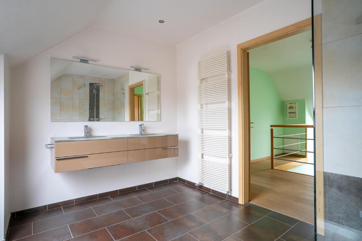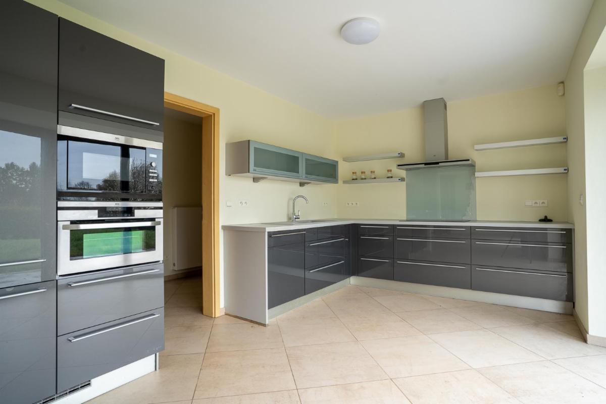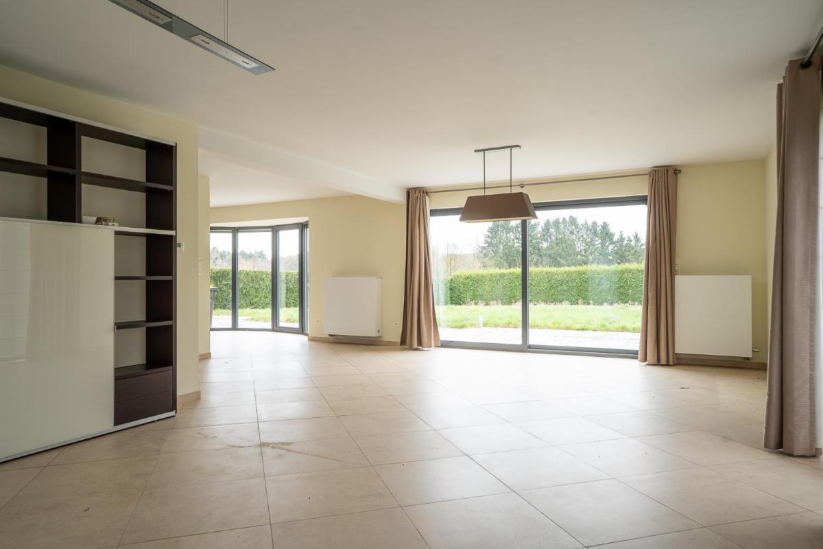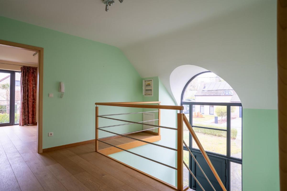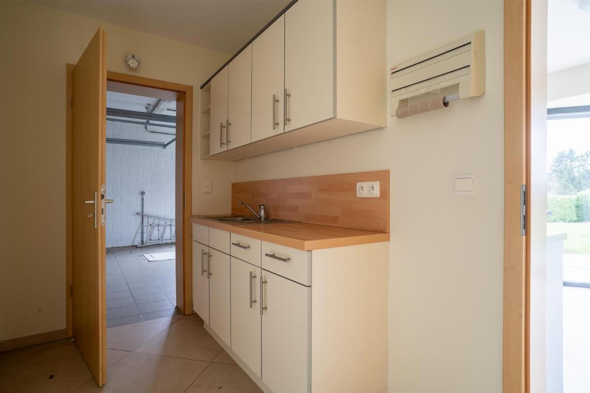 RDC: hall, salon, salle à manger, cuisine équipée avec bow-window, arrière cuisine avec buanderie, wc.