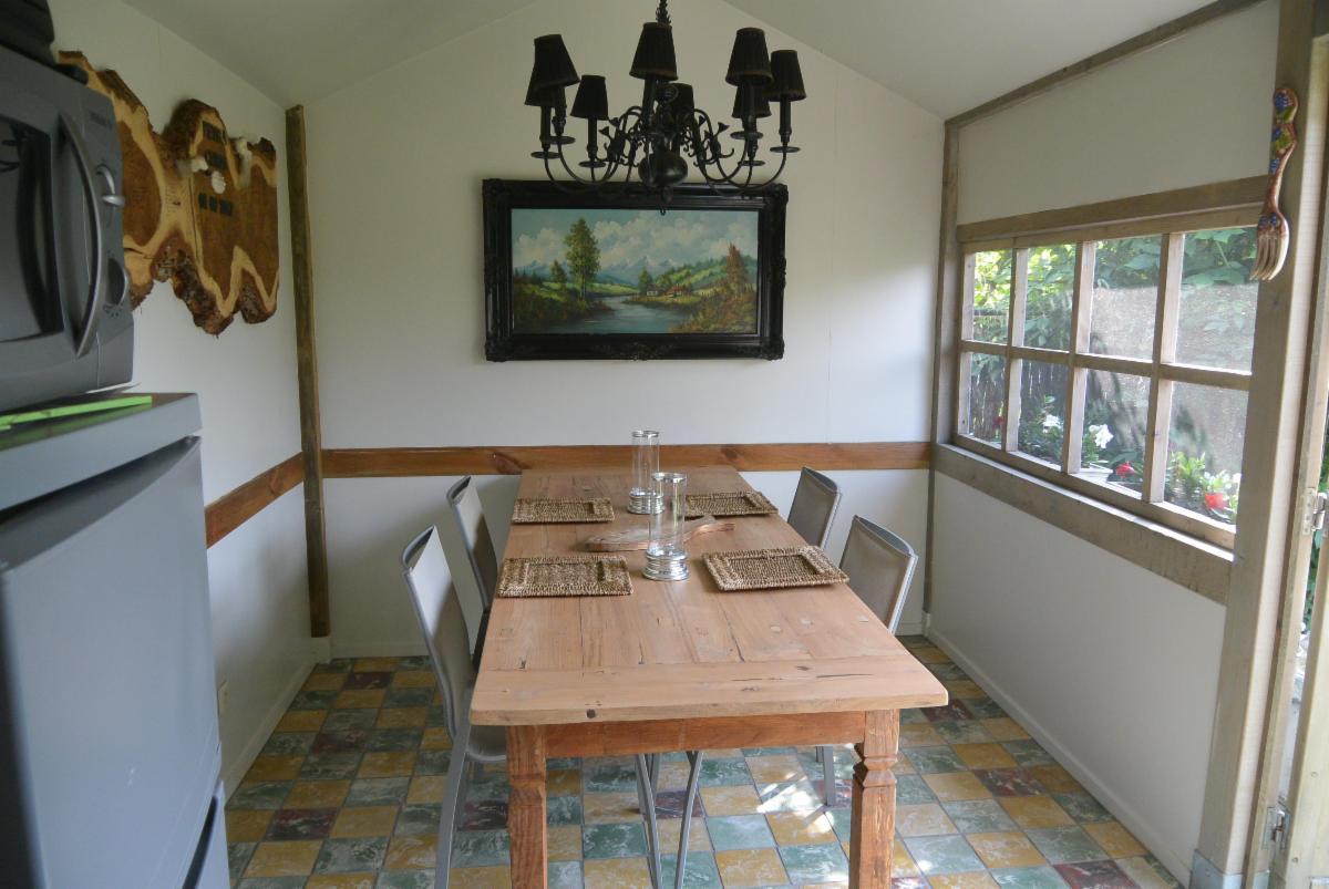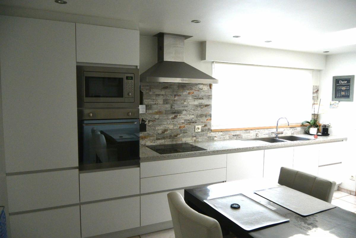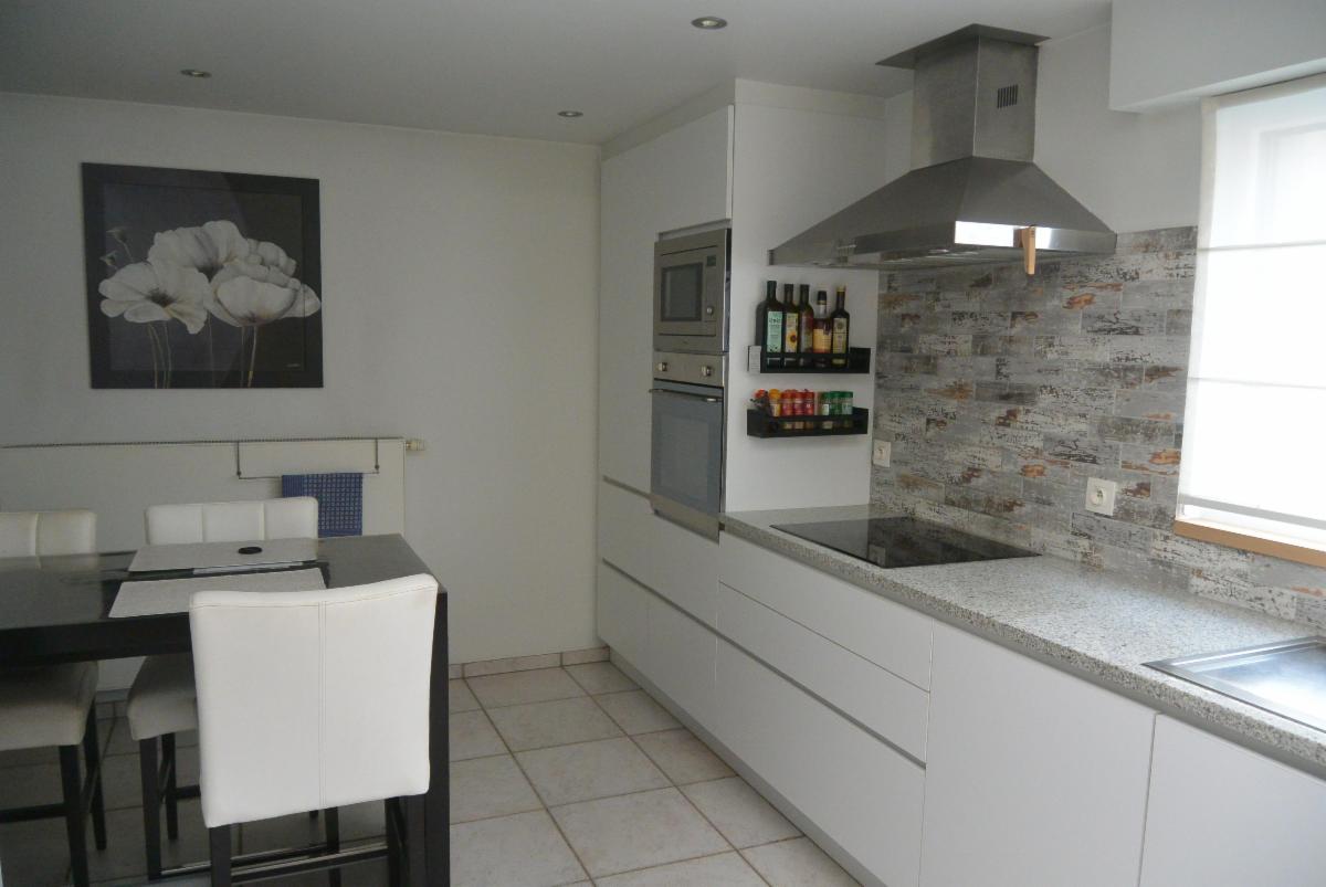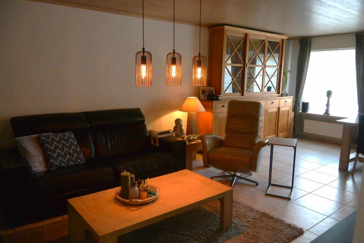 inkomhal met gastentoilet, ruime L-vormige leefruimte met open haard, uitgeruste keuken, badkamer, wasruimte, veranda met zicht op terras