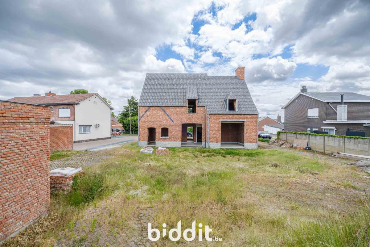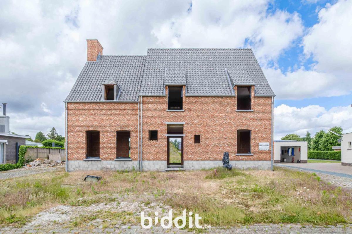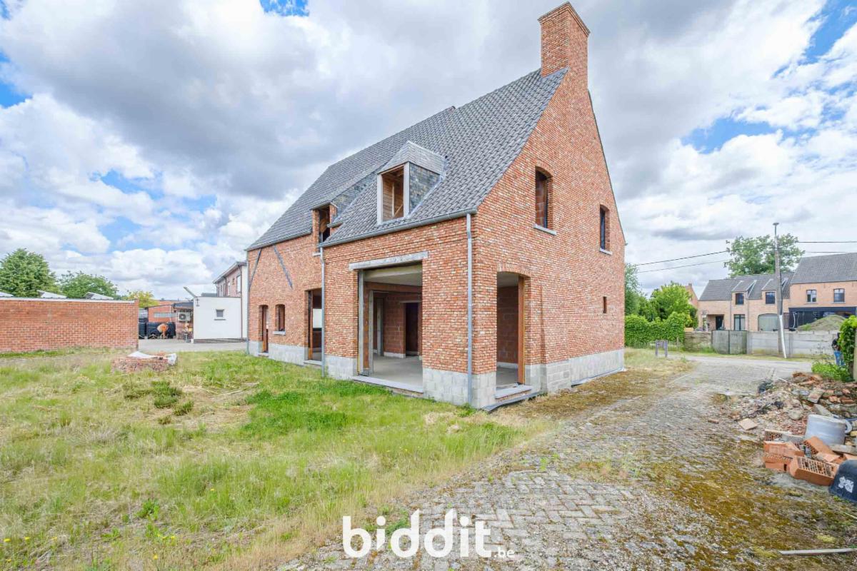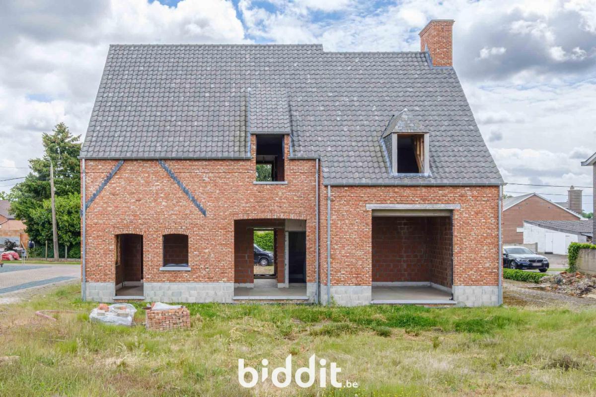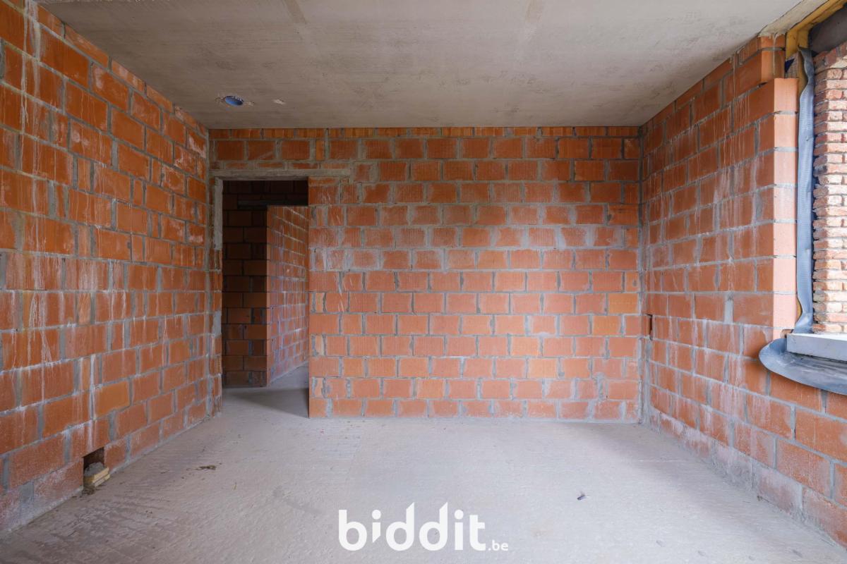 - gelijkvloers: inkom, vestiaire + trap, leefruimte, keuken en bijkeuken, bureau en overdekt terras en garage;