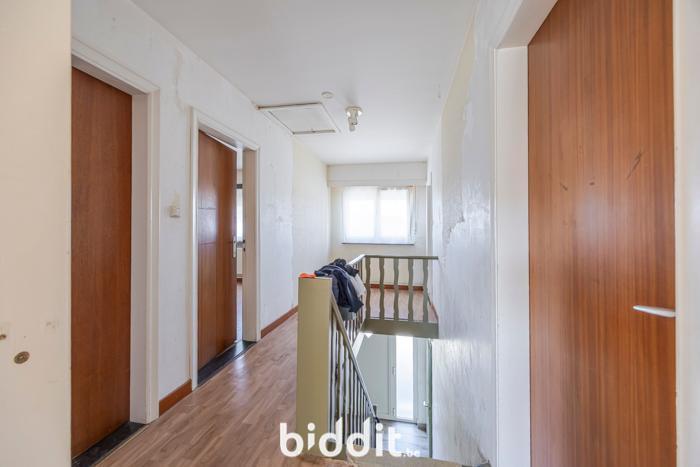 Boven bevinden zich drie ruime slaapkamers, een kleinere kamer en de badkamer (douche, bad, enkele lavabo en toilet) en een geïsoleerde zolder (toegankelijk via luik). De CV-installatie werkt op aardgas met een recente Vaillant-ketel en de elektriciteit is goedgekeurd.