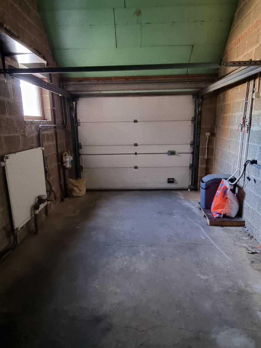 au rez-de-chaussée : un hall d'entrée, un W.C. avec un petit lavabo, un living, une cuisine, un garage.
