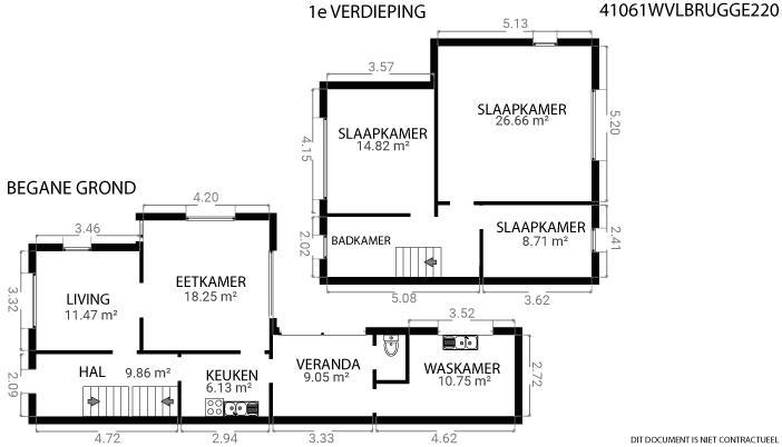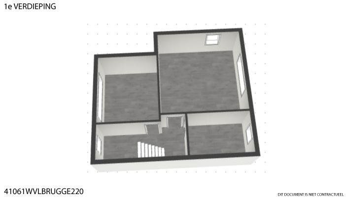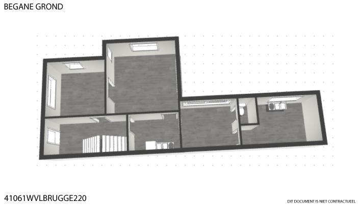 Woonhuis in HOB met tuin. Bruggestraat 220. In nabijheid van openbaar vervoer, scholen en winkels. Bushalte op 800 m. Omvattende op het Gelijkvl.: inkomhal, living met zit- en eethoek, keuken (half ingericht), veranda, toilet, wasplaats, werkplaats, Verdieping: nachthal, 3 slaapkamers, badkamer (bad, lav. w.c.); Kl. kelder. Zolder. Afz. garage (18 m²). Zuidgerichte tuin. Hoofdgebouw met zadeldak.
