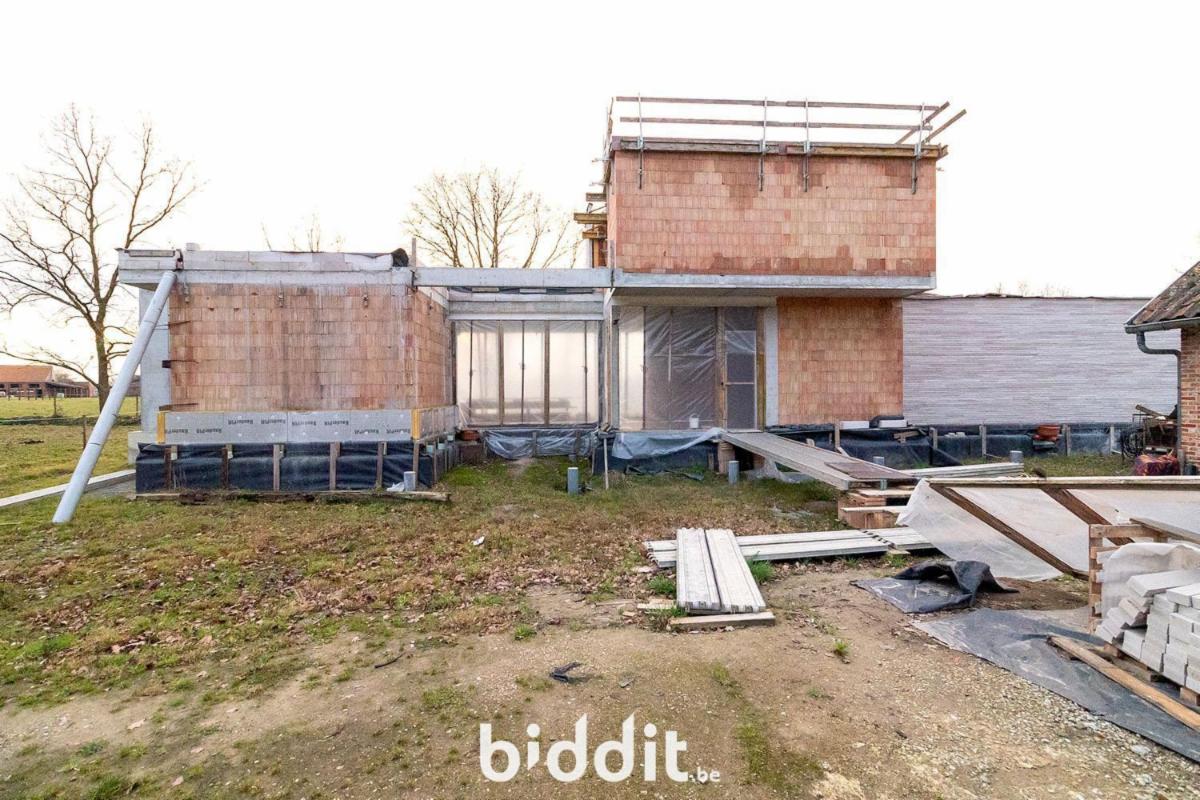 Het hoofdgebouw bevindt zich momenteel in ruwbouwstaat, wat de koper de mogelijkheid biedt om de woning volledig verder af te werken en in te richten naar eigen smaak en behoeften. Dit biedt een unieke kans voor wie op zoek is naar een project met veel potentieel in een groene omgeving.