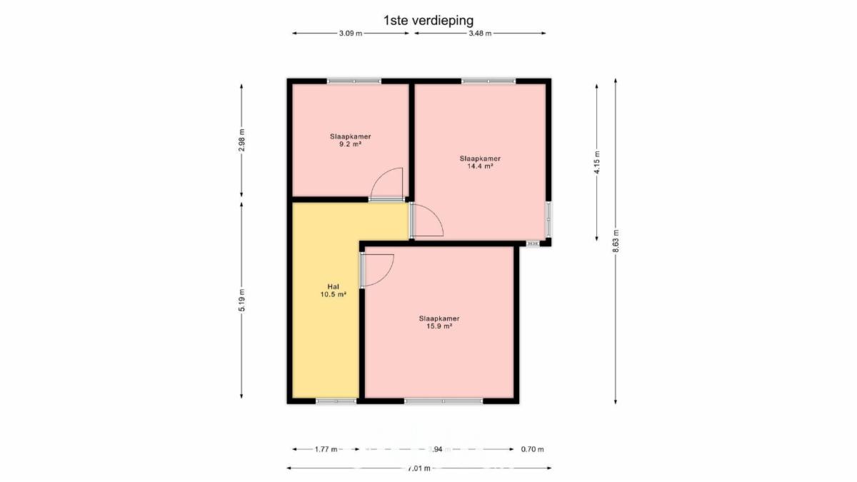 Dakverdieping: traphal, 2 dakkamers.