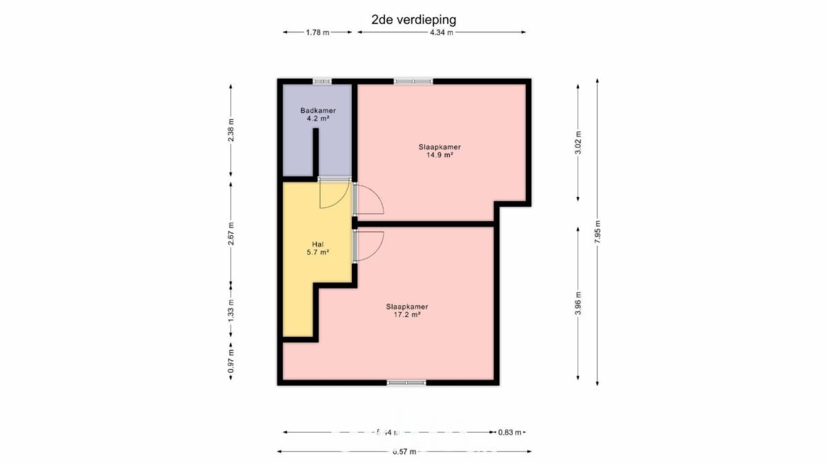 Verdieping: nachthal, badkamer,2 slaapkamers.