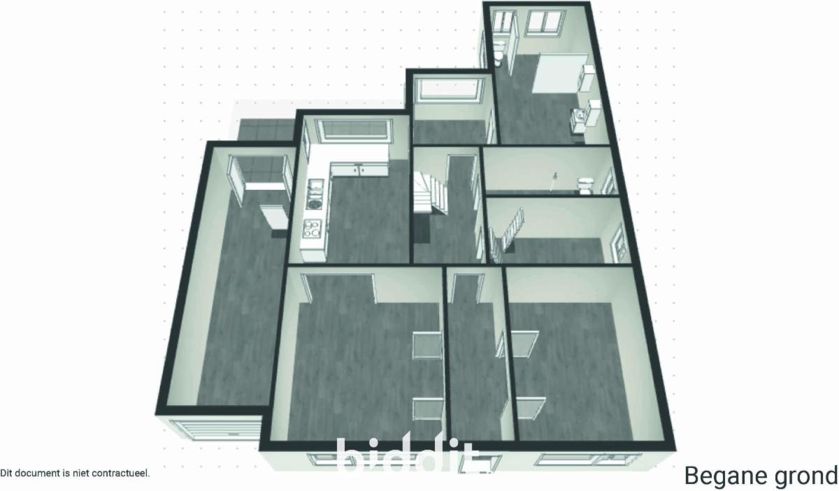 Deze woning heeft een open keuken met woonkamer, badkamer en bureau/eetkamer. Op de eerste verdieping bevinden zich 3 slaapkamers. Er is tevens een garage die tevens de technische ruimte is. De woning heeft een grote tuin en is reeds voorzien van zonnepanelen en een thuisbatterij.