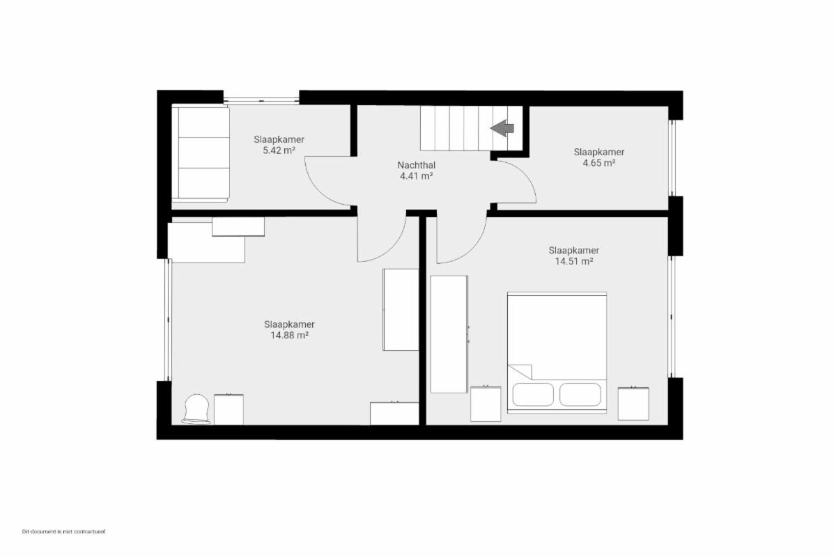 Verdieping (46 m²) : 4 slaapkamers.