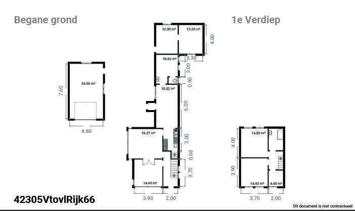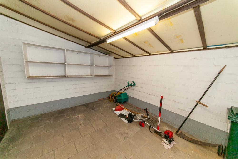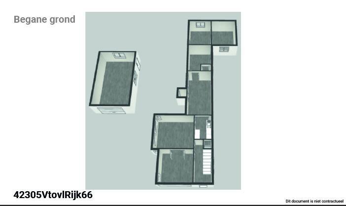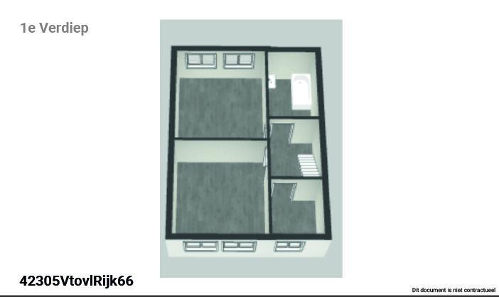 Indeling: op het gelijkvloers: inkomhal met trap naar de 1e verdieping, apart toilet, woonruimte, keuken, berging, droge kelder, aparte garage; Op de 1e verdieping: 2 ruime slaapkamers, badkamer, bureauruimte; Op de 2e verdieping: ruime zolder met mogelijkheid tot het creëren van een 3e slaapkamer.