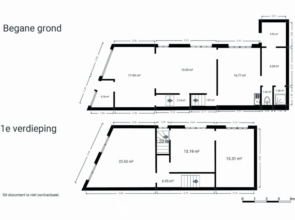 Op het gelijkvloers een inkomhal, aansluitende een grote leefruimte en een ruime keuken. Tot slot is er nog een extra ruimte voorzien waar u eventueel een badkamer met douche en toilet kan installeren.