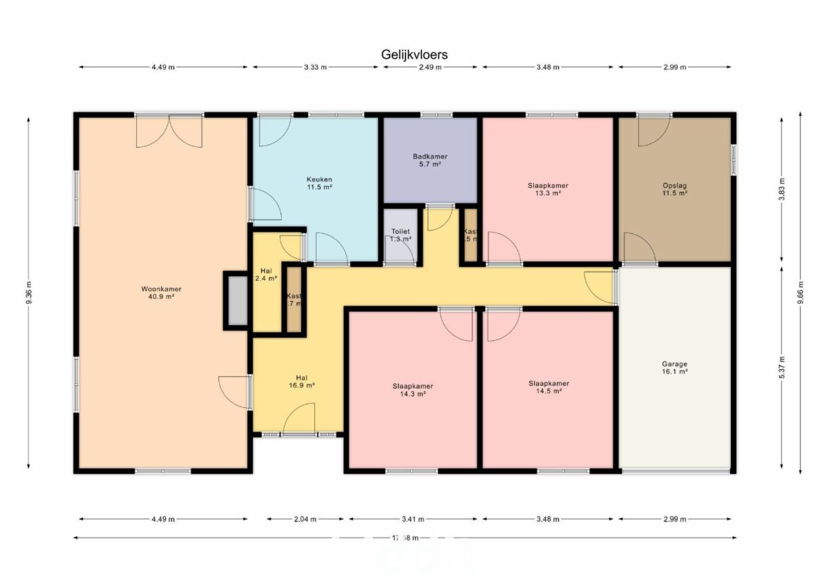 De woning omvat: een inkomhal, ruime woonkamer, aparte keuken, 3 slaapkamers, badkamer, toilet, berging, garage, kelder, zolder en tuin rondom de woning met tuinberging.