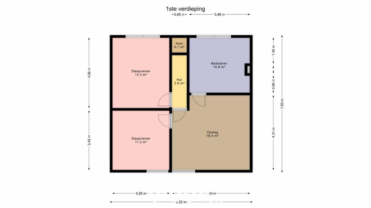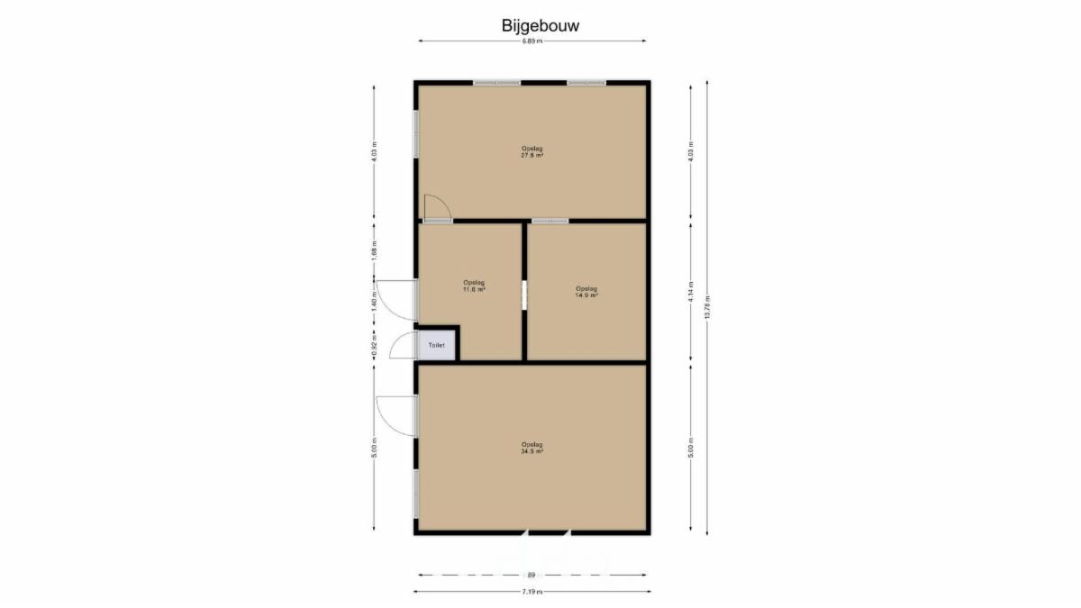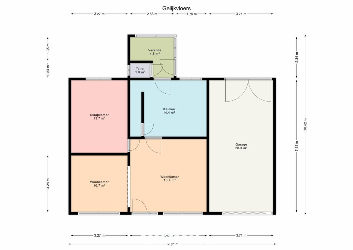 Indeling: Gelijkvloers: woonkamer, keuken, slaapkamer, veranda, garage; 1e Verdiep: 2 slaapkamers, badkamer, opslagruimte; Bijgebouw met opslagruimtes. Ruime tuin (690 m²).